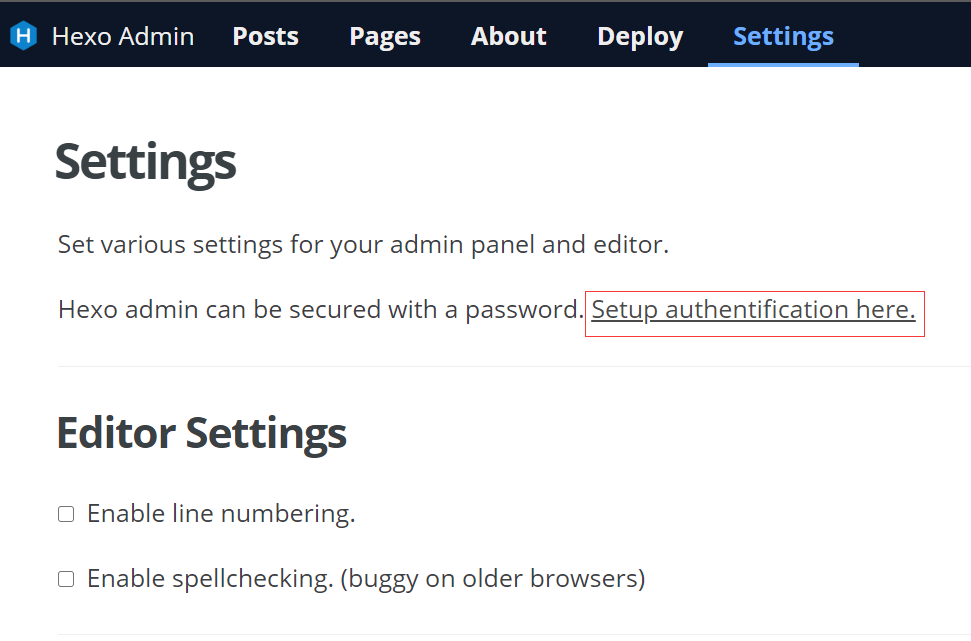在主页面上方选在 “ Setting ”,然后点击“ Setup authentification here ”。