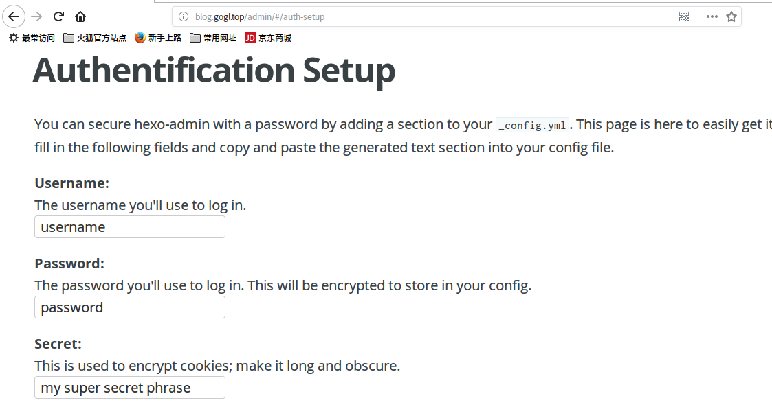 此时,访问后台不需要账号密码即可进入,为安全起见设置账号密码。