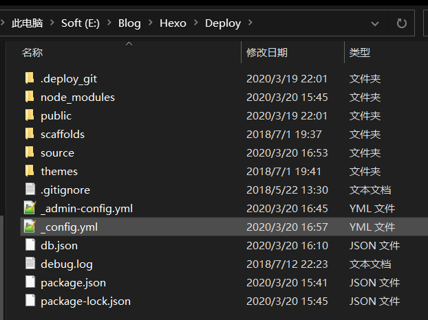 粘贴到 _config.yml 文件中。注意此文件非主题中的配置文件,目录结构如下。
