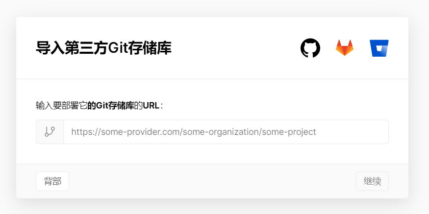 授权完成后,选择 Import Git Repository ,点击 Continue,进入如下界面。输入你的仓库 url(https)。
